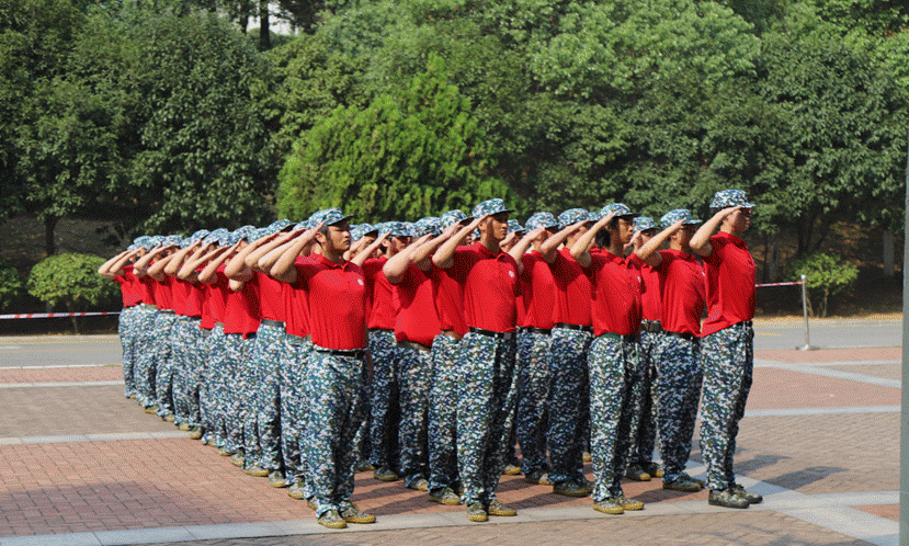 早晨,随着阳光一同到来的是同学们整齐响亮的脚步声。教练们严而有爱,在严格的口令和亲切的指导中,同学们复习训练了队列动作,从立正、稍息、停止间转法、敬礼到行进,每一个动作都认真地力求标准,同学们的努力与坚持凝结成汗水洒满了整个军训场。