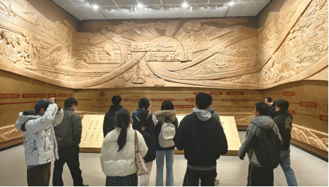 学科在学校的发展脉络;有人指着浮雕里的科研场景,结合自己的项目方向谈感悟,把校史与自身专业成长紧紧联结。