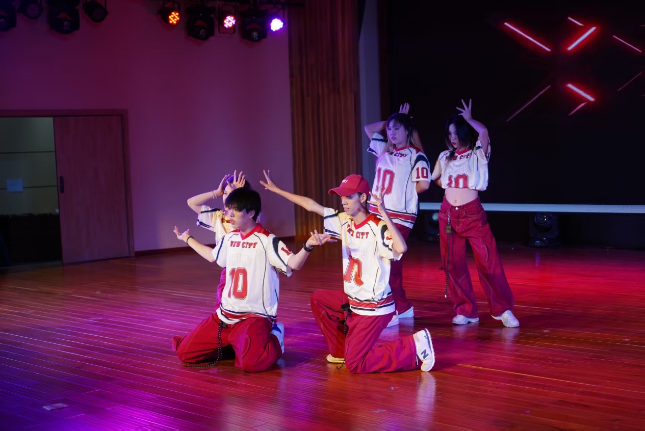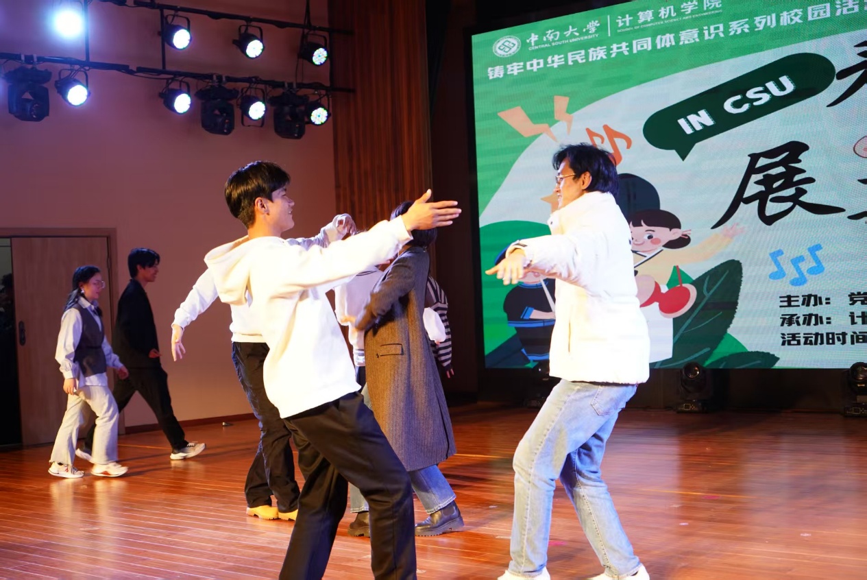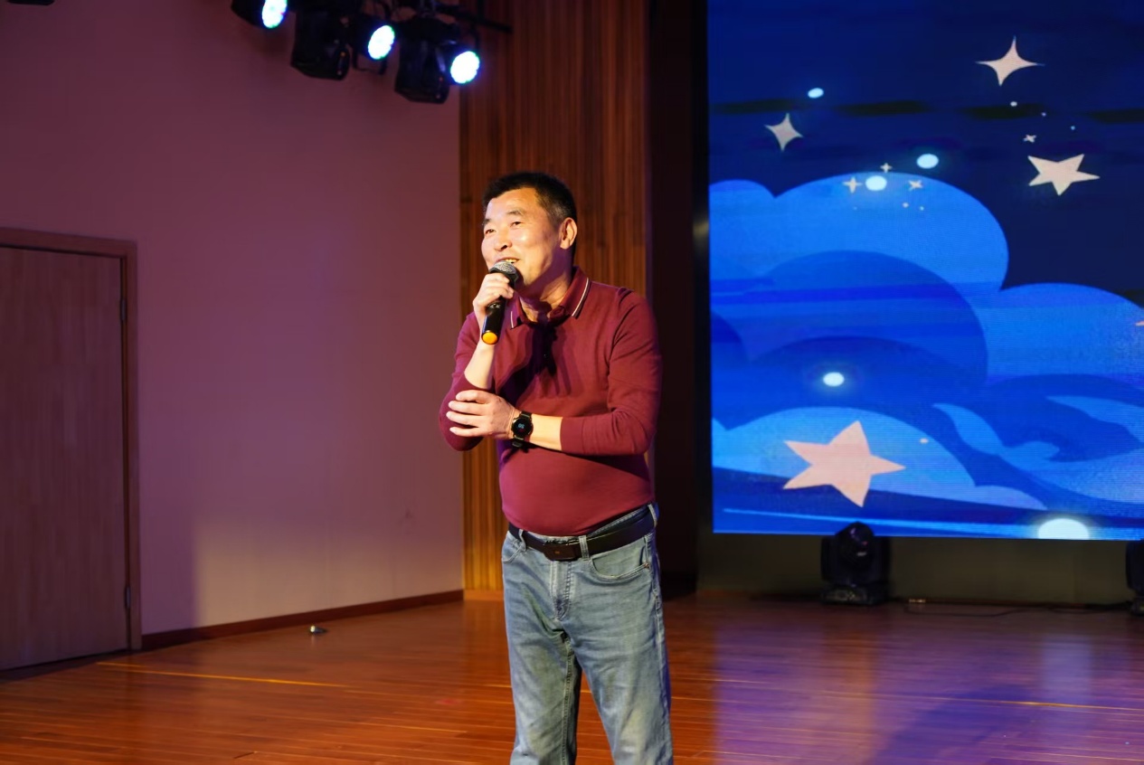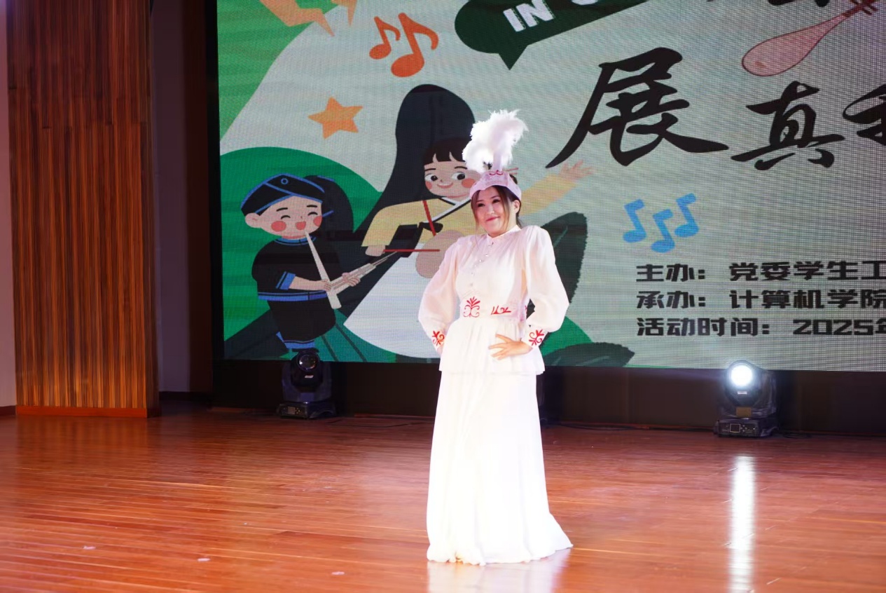 首轮互动环节的趣味猜歌游戏过后,节目节奏愈发多元:宁帅铭的京剧《鱼肠剑》字正腔圆,尽显国粹韵味;孔禹程的《大东北我的家乡》以质朴歌声勾勒故土烟火;姚姝畅团队的舞蹈《神的随波逐流》用轻盈舞步诠释活力,舒清瑶的《下潜》则以低沉声线叩击人心。第二轮互动环节的猜动画人物挑战,让师生在欢笑中拉近了距离。