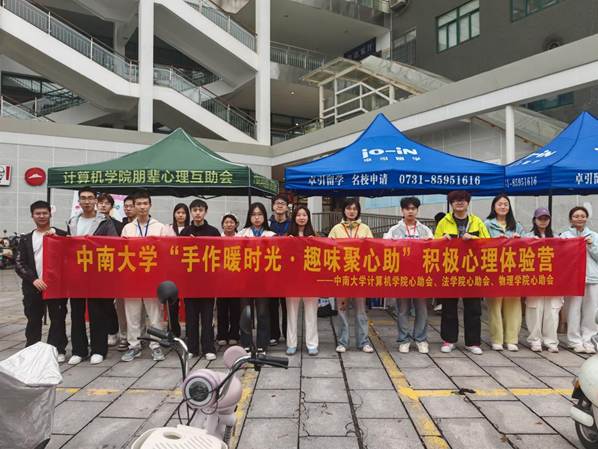 朋辈心理互助会于麓南校区二食堂前坪成功举办“手作暖时光·趣味聚心助”积极心理体验营。本次活动面向全体学生,旨在通过多元趣味互动,帮助同学们释放压力、探索自我,并在朋辈关爱中传递积极心理力量。